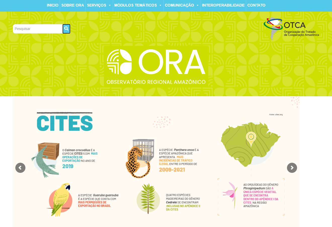 A Agência Carcará foi responsável pela crítica e complexa migração do sistema Observatório Regional Amazônico (ORA) da Organização do Tratado de Cooperação Amazônica (OTCA) para o ambiente de produção. Este projeto técnico de alta relevância garantiu que uma das principais ferramentas de monitoramento e análise da região amazônica estivesse plenamente operacional e acessível ao público e aos parceiros da OTCA em três idiomas: Português, Espanhol e Inglês.